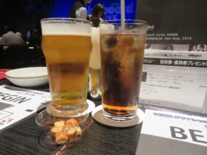 食事も、本格的な料理も楽しめますが、開場してから座席についてライブ開始時間まで約1時間、私たちはゆっくりと過ごしたい方なので、いつも、お酒のアテになるようなメニューをオーダーしています。