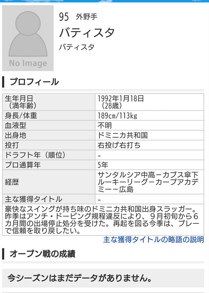 今回の情報の発端となったのは、Yahoo!選手名鑑にバティスタのプロフィールが掲載されたからです。