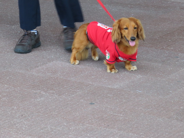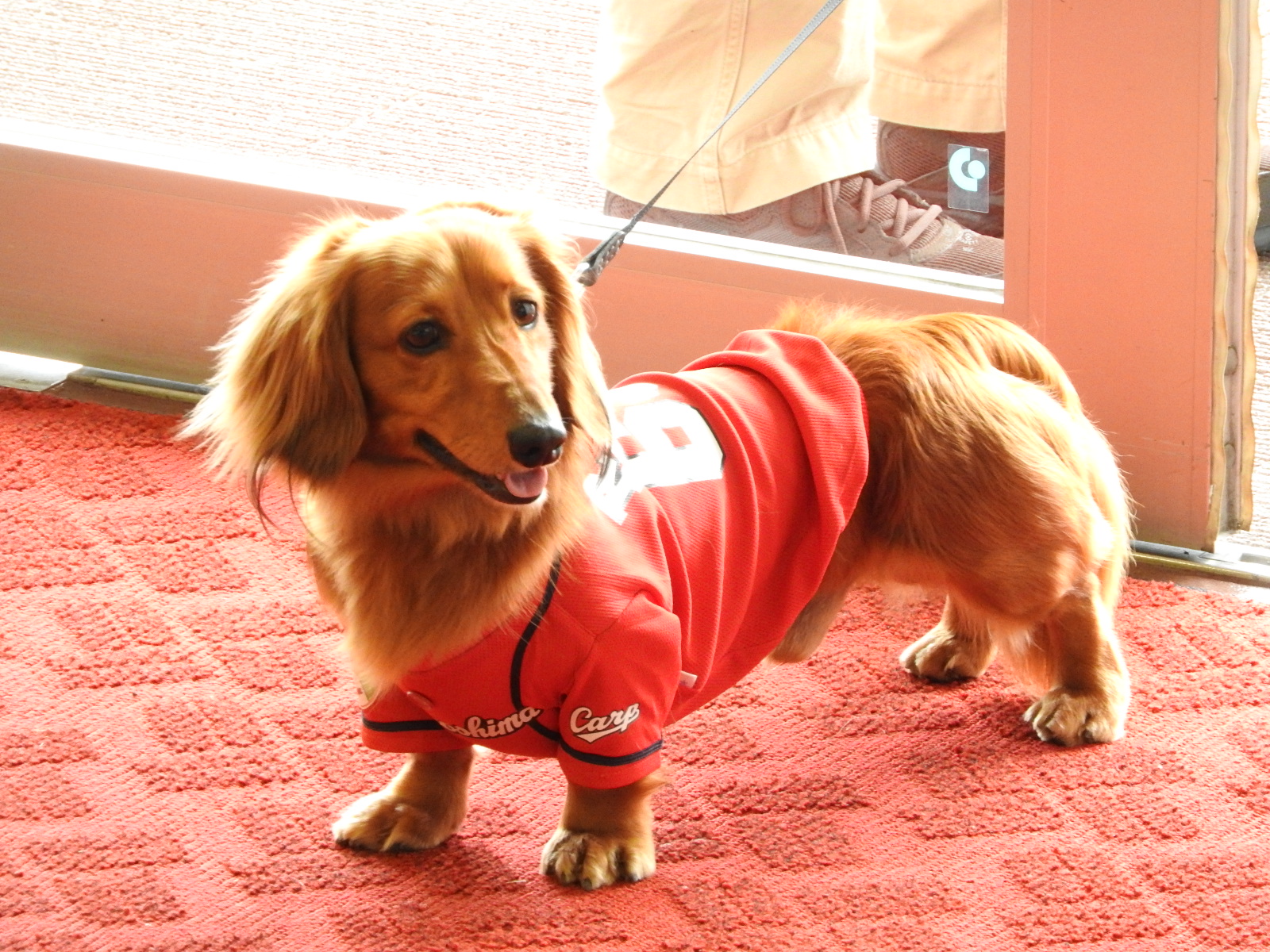 ロックはこだわりのカープわんこユニフォームを着て、滞在の場所でスタッフに「カープ優勝したよ~」って喜んでいたみたい